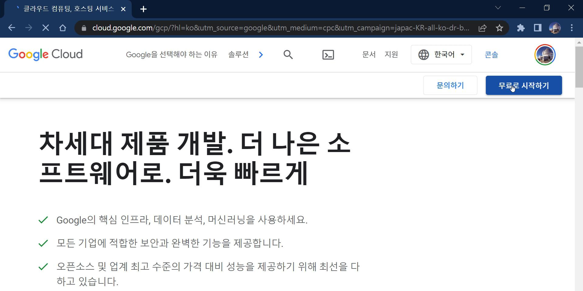 - Google Cloud Platform (GCP) 들어가서 무료로 시작하기 눌러서 GCP 실행