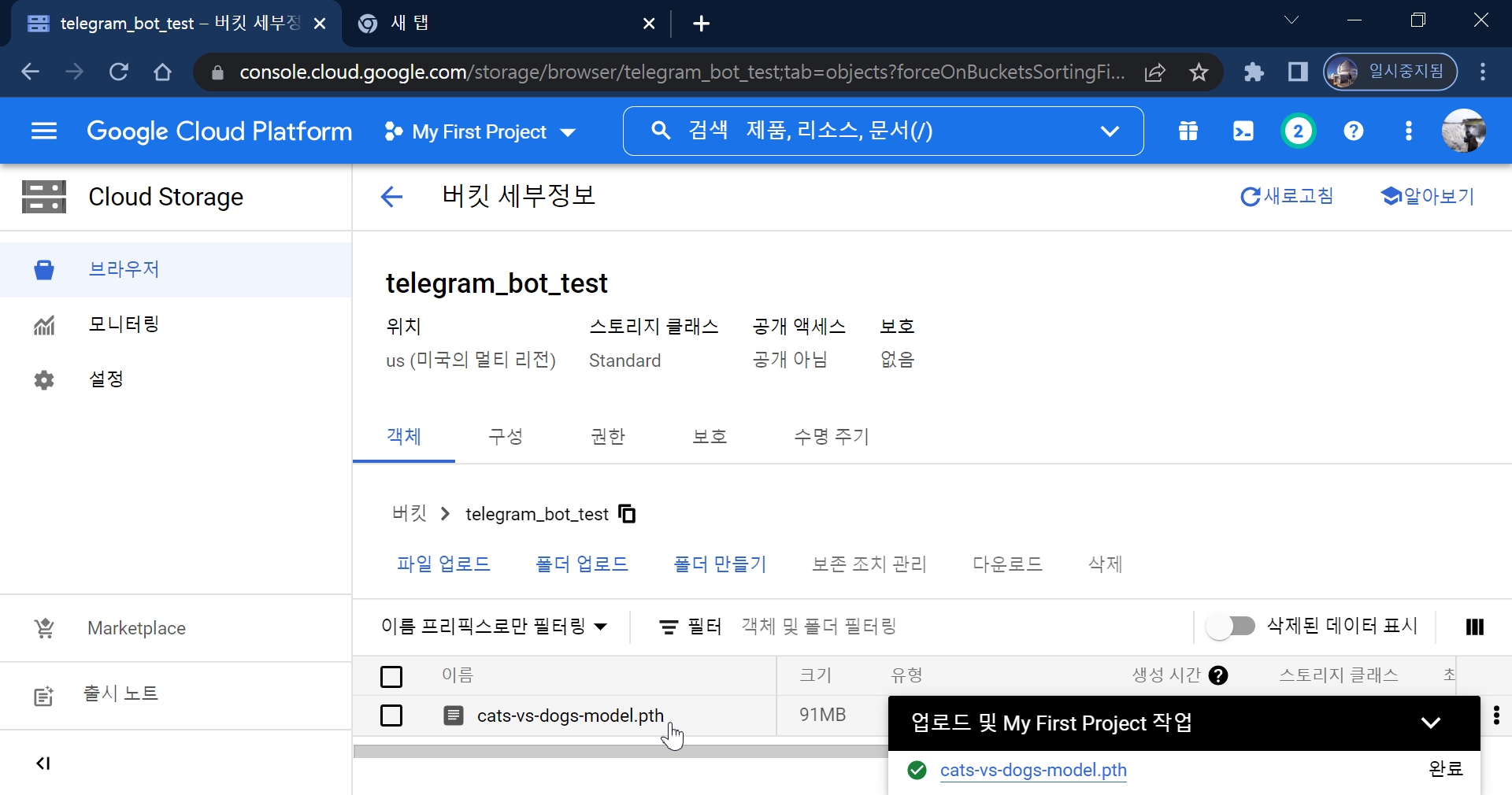 1. Google Cloud Storage 버킷에 미리 트레인한 pytorch 모델 업로드